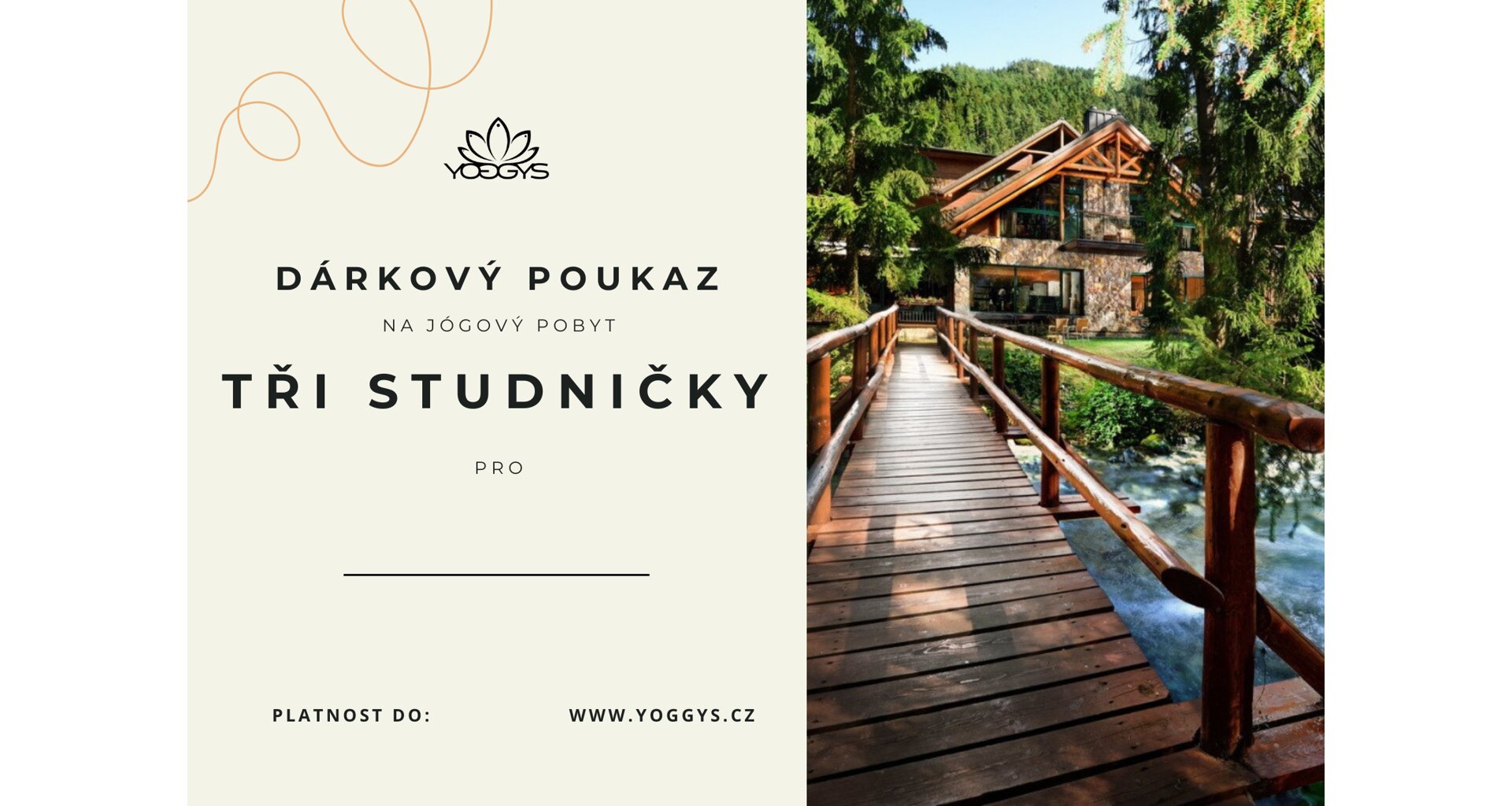 Voucher je platný na pobyt s jógou u Třech Studniček, který se bude konat v roce 2026, termín bude upřesněn.