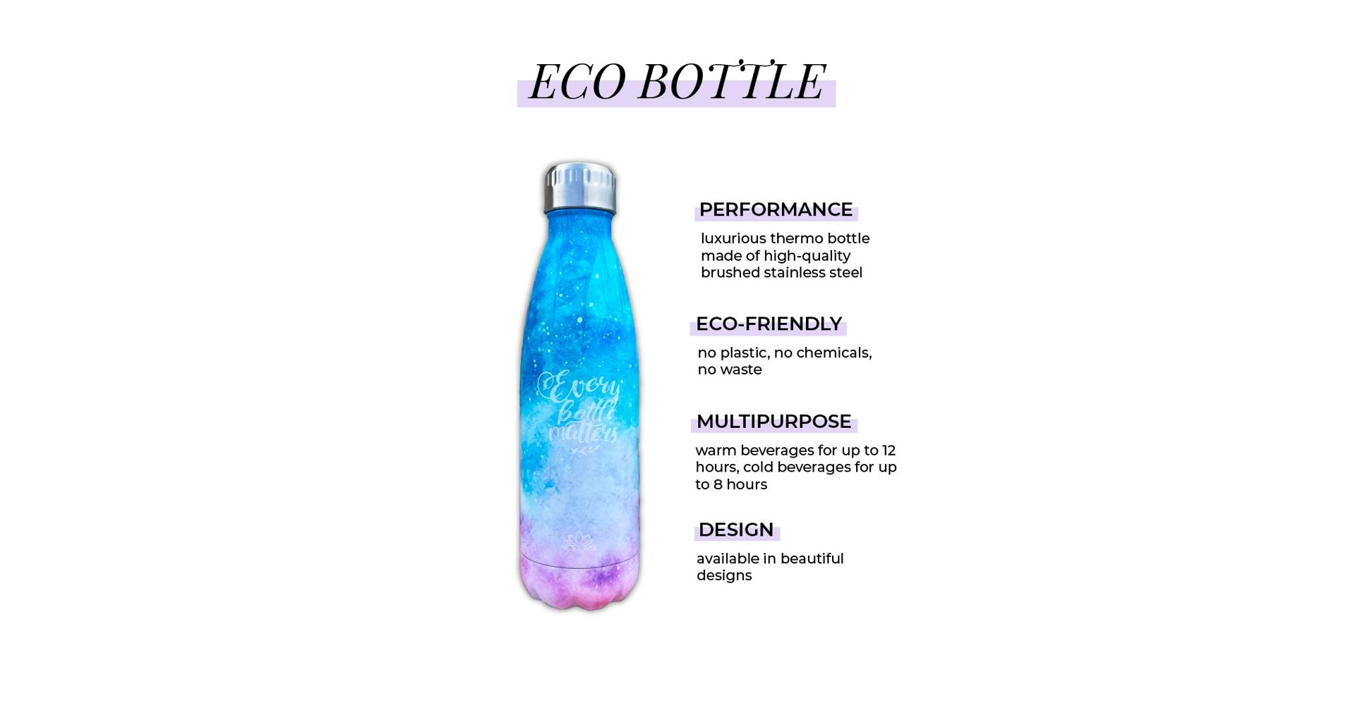 Tahle boží vakuová termolahev ti bude skvělým parťákem na cestách, v práci ale i doma. Lahev je vyrobena z té nejkvalitnější oceli Není cool? Cool bude zaručeně i tvůj nápoj! A jestli patříš mezi zmrzlíky, naplň lahev horkým čajem se zázvorem a svetr můžeš nechat doma. Navíc se používáním lahve společně staráme o naši matičku zemi a žijeme ekologičtěji bez chemie, plastů a odpadu.