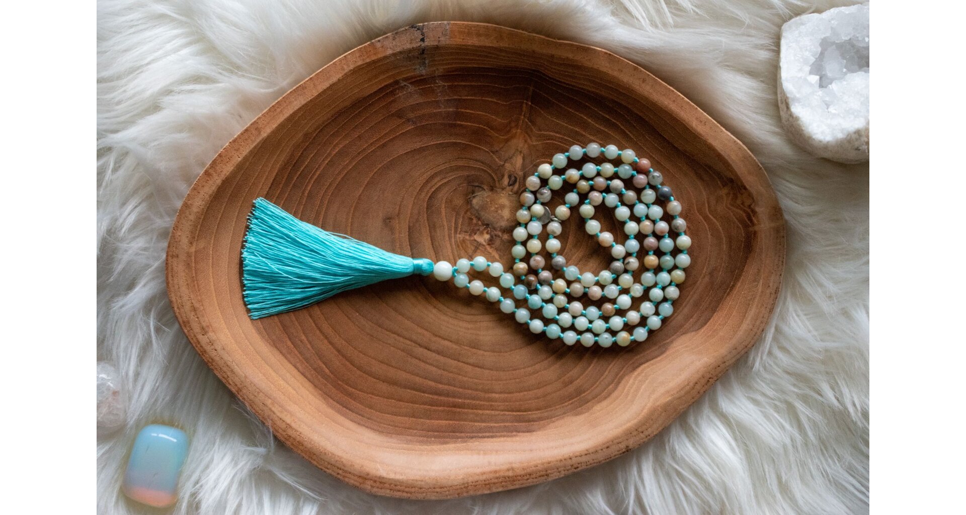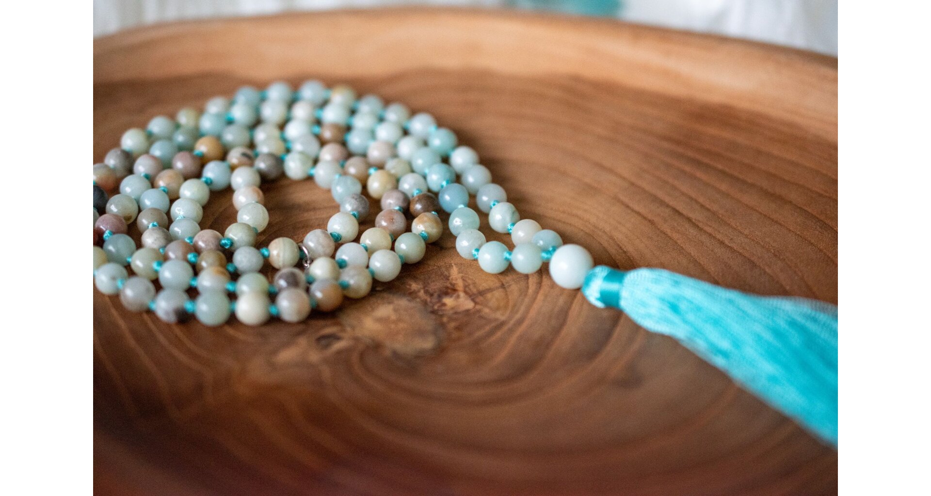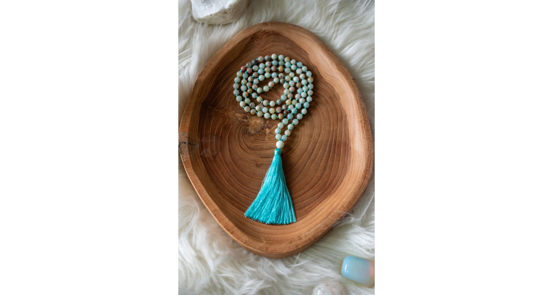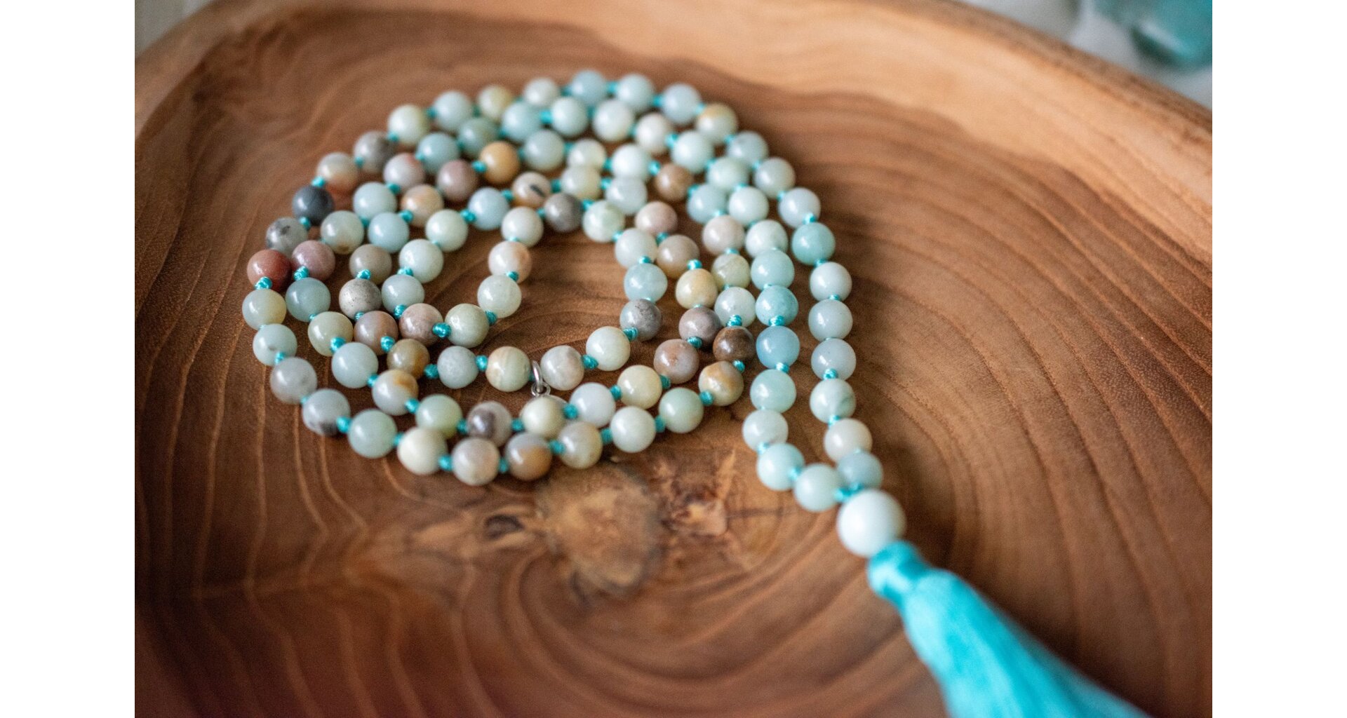 Meditační mala - Amazonit se stříbrným logem (Ag 925/1000)