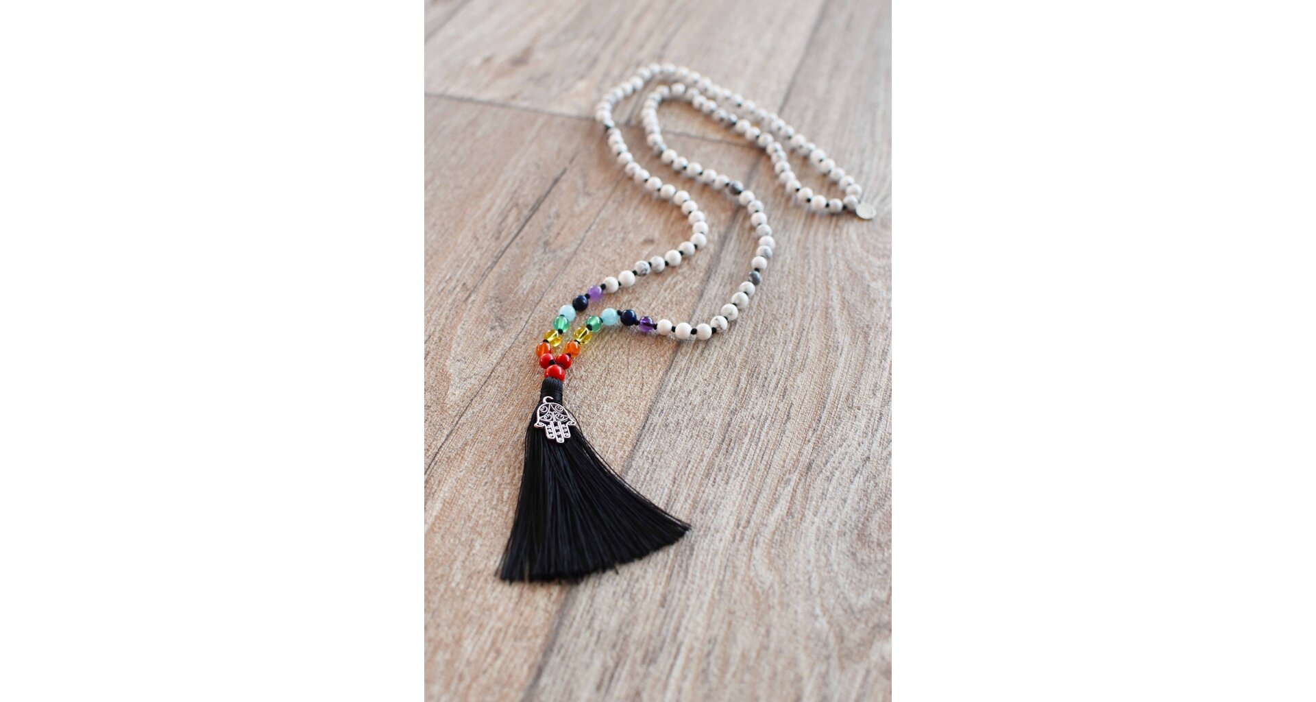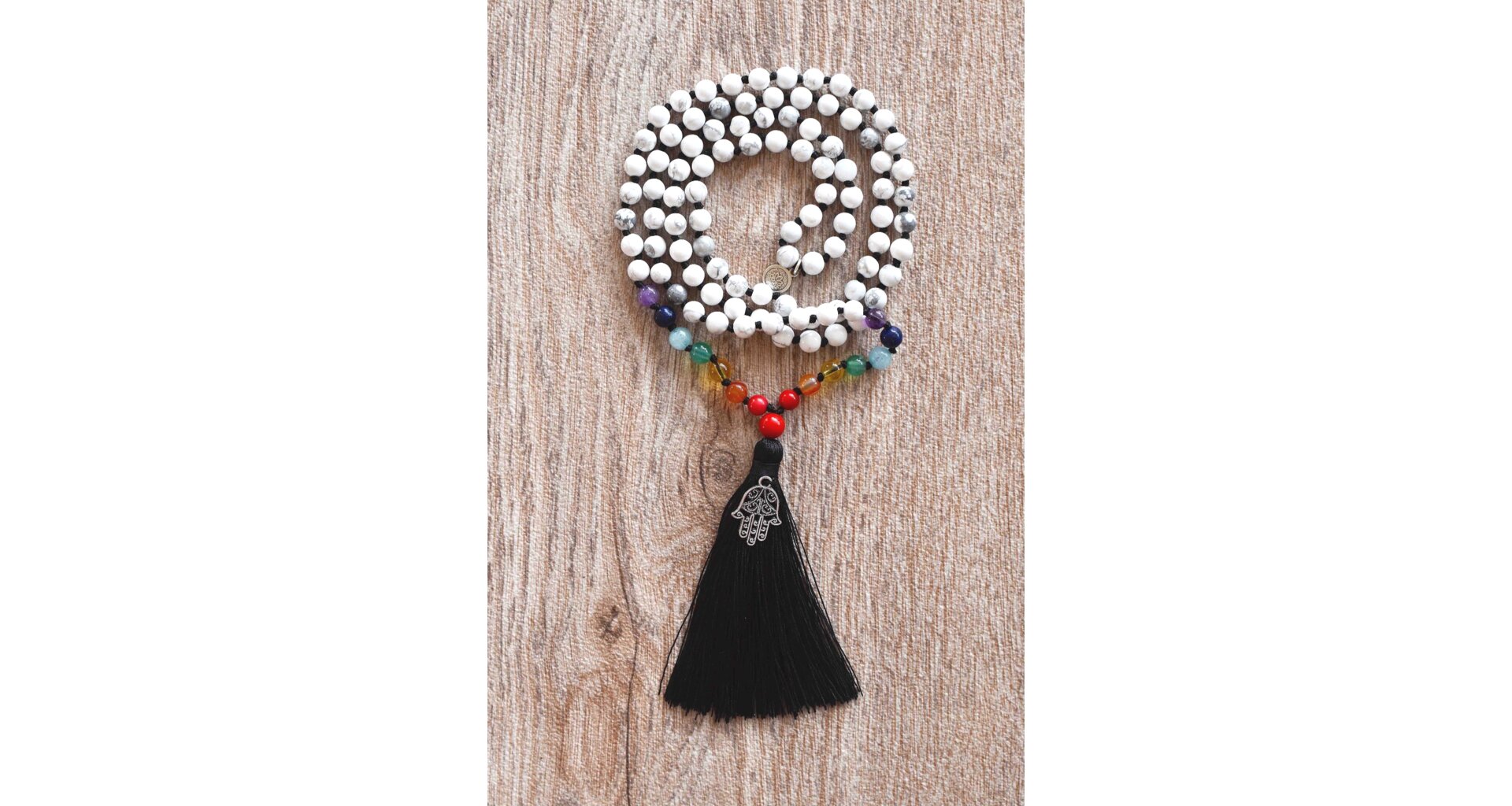 Meditační mala z čakrových korálků podporuje vyvažování sedmi hlavních energetických center těla. Každý korálek pomáhá při meditaci zaměřit se na konkrétní čakru, čímž přispívá k harmonii, duchovnímu růstu a celkové vitalitě.