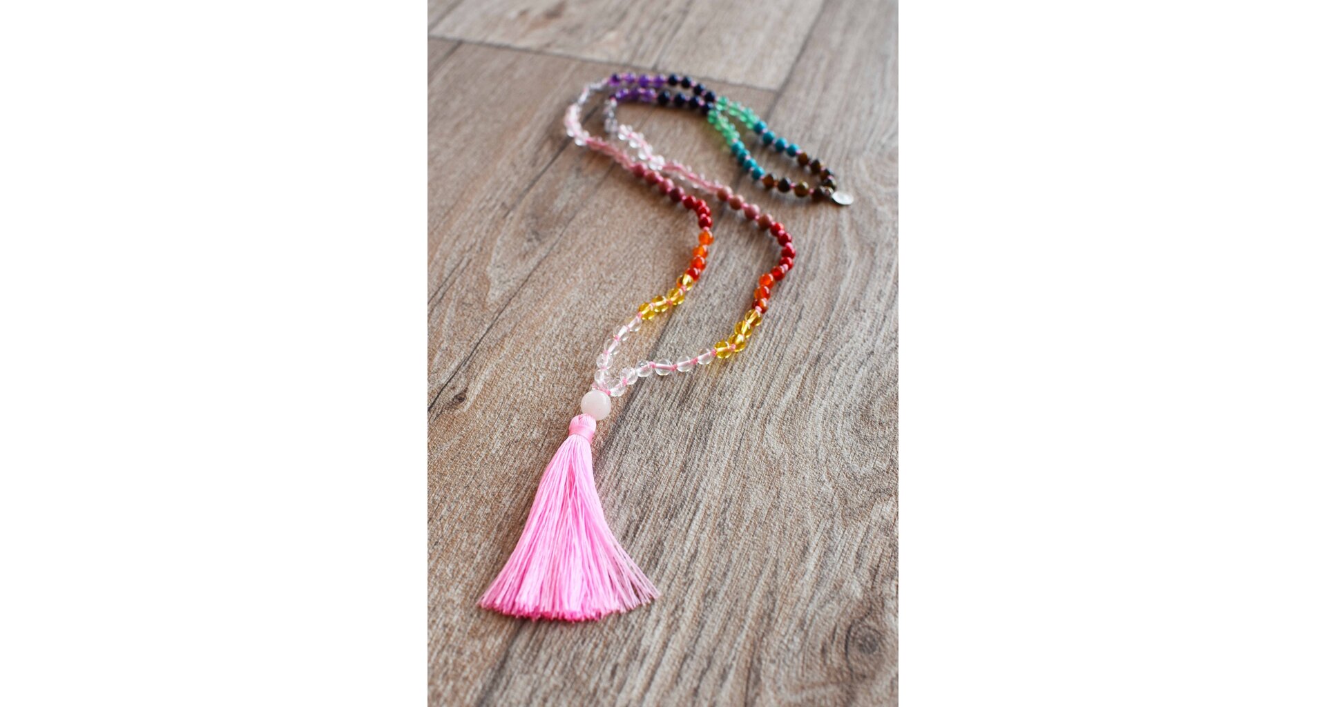 Meditační mala složená z čakrových korálků je speciální nástroj určený k harmonizaci a vyvažování sedmi hlavních čaker – energetických center v těle. Každý korálek představuje jednu čakru, od kořenové až po korunní, a pomáhá při meditaci zaměřit se na konkrétní oblast těla i ducha. Použití této maly podporuje nejen duchovní růst a sebepoznání, ale také emoční vyrovnanost a fyzickou vitalitu. Díky svému univerzálnímu působení je ideální pro každého, kdo chce zlepšit tok energie a dosáhnout vnitřní harmonie.