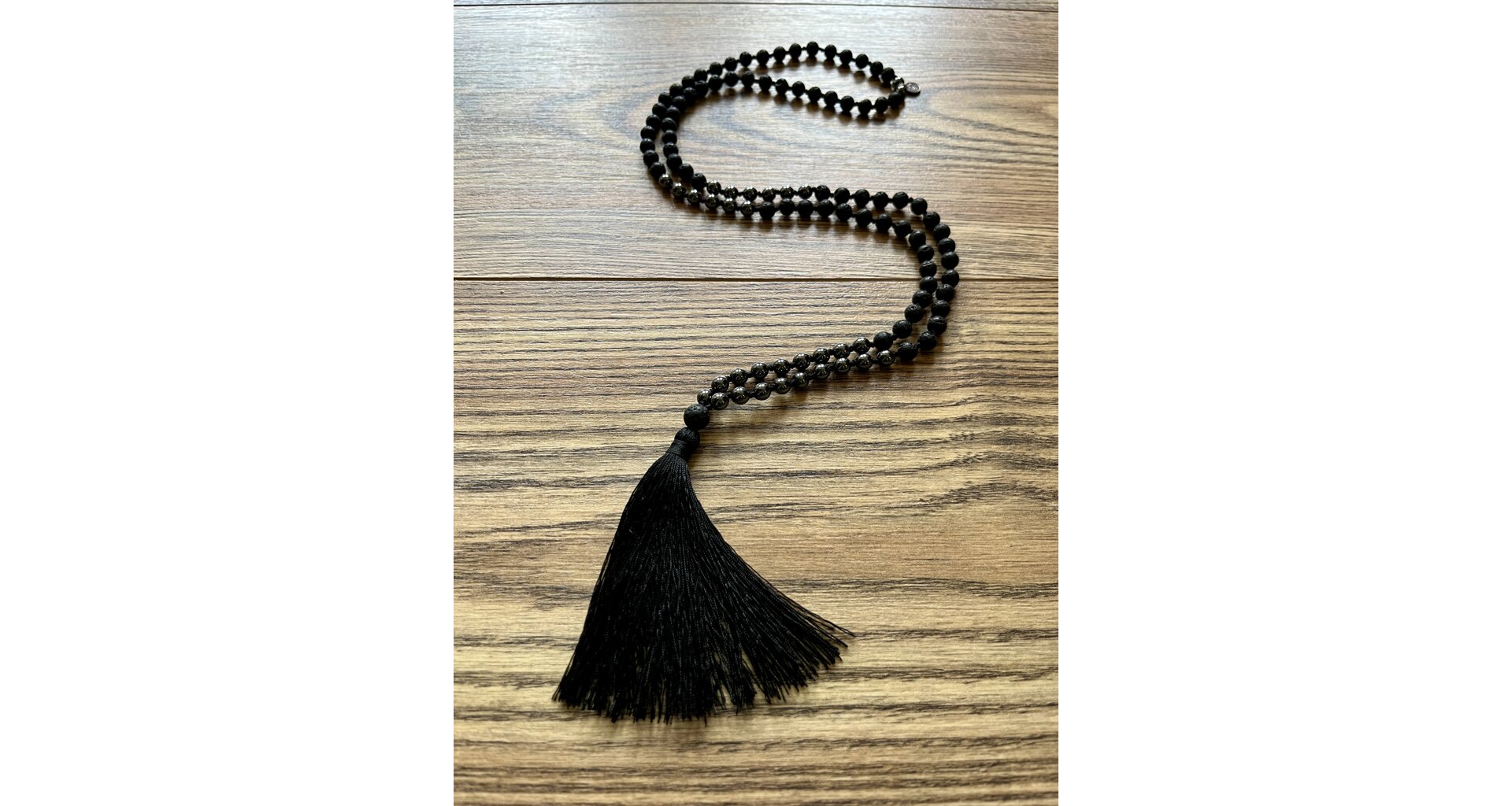 Meditační mala - Hematit a Láva se stříbrným logem (Ag 925/1000)