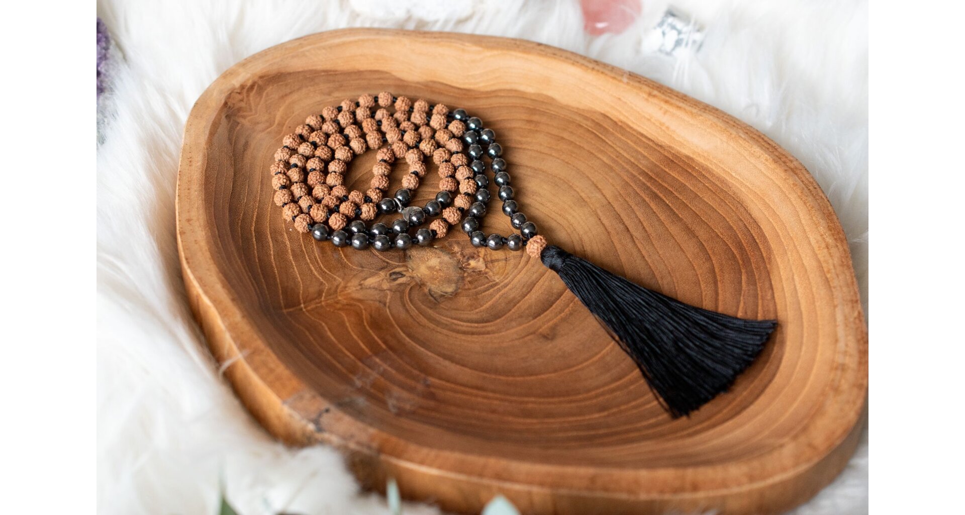 Hematit a Rudraksha jsou mocnou kombinací pro ochranu a duchovní posílení. Hematit je uzemňující kámen, který podporuje odvahu, koncentraci a vyrovnanost. Rudraksha, posvátné semínko, přináší duchovní sílu, klid a ochranu před negativními energiemi. Společně pomáhají stabilizovat mysl a posilují vnitřní sílu.