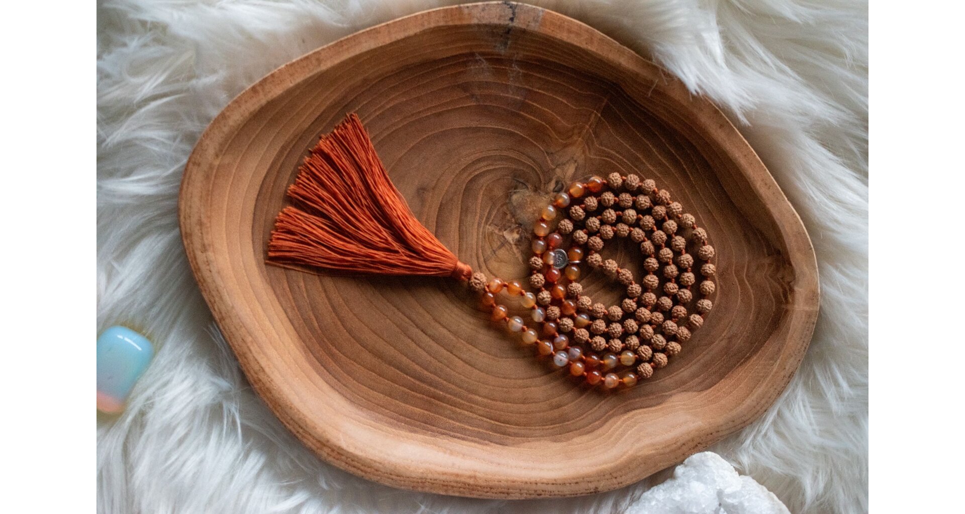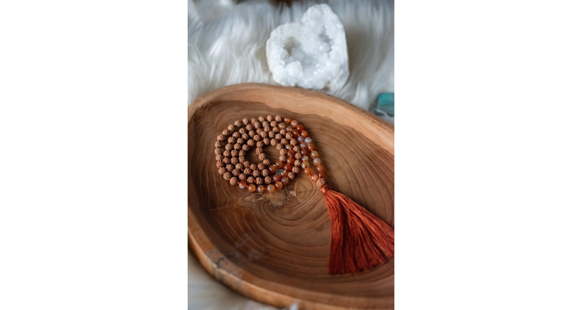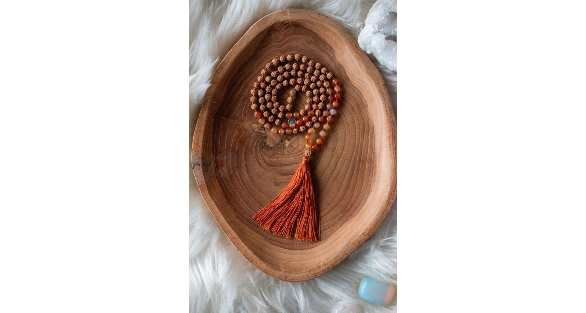 Karneol a Rudraksha tvoří energizující a ochrannou kombinaci. Karneol je teplý oranžový kámen, který podporuje vitalitu, kreativitu a odvahu. Rudraksha, posvátné semínko, přináší duchovní sílu, ochranu a klid. Společně povzbuzují sebevědomí, životní energii a vnitřní rovnováhu.