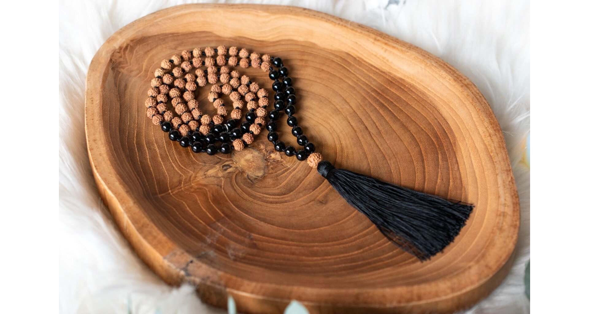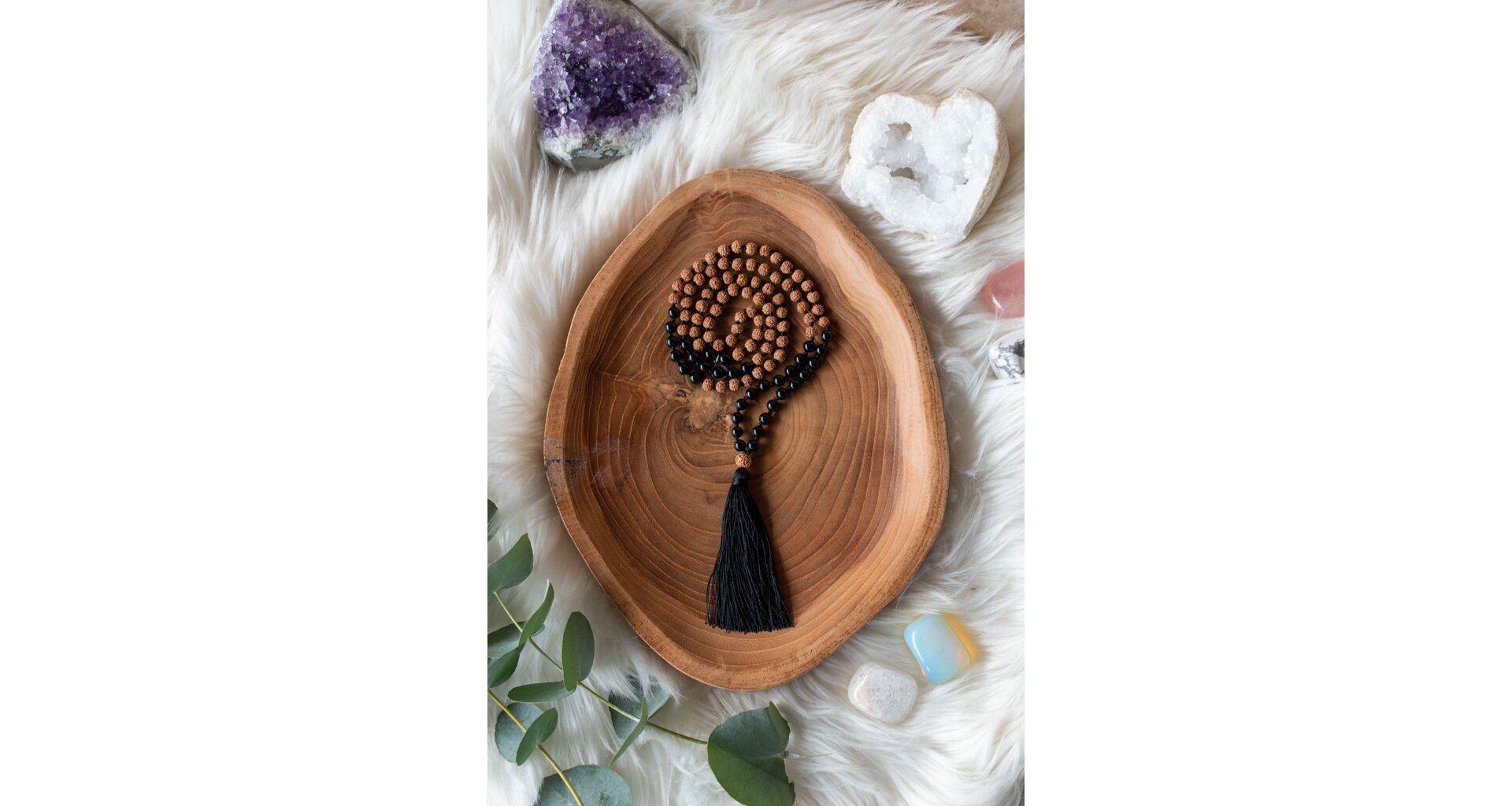 Onyx a Rudraksha jsou silnou kombinací pro ochranu a posílení vnitřní síly. Onyx je černý kámen, který pomáhá při uzemnění, odvaze a odstraňování negativity. Rudraksha, posvátné semínko, přináší duchovní ochranu, klid a podporuje soustředění. Společně posilují odolnost vůči stresu a podporují sebeovládání.