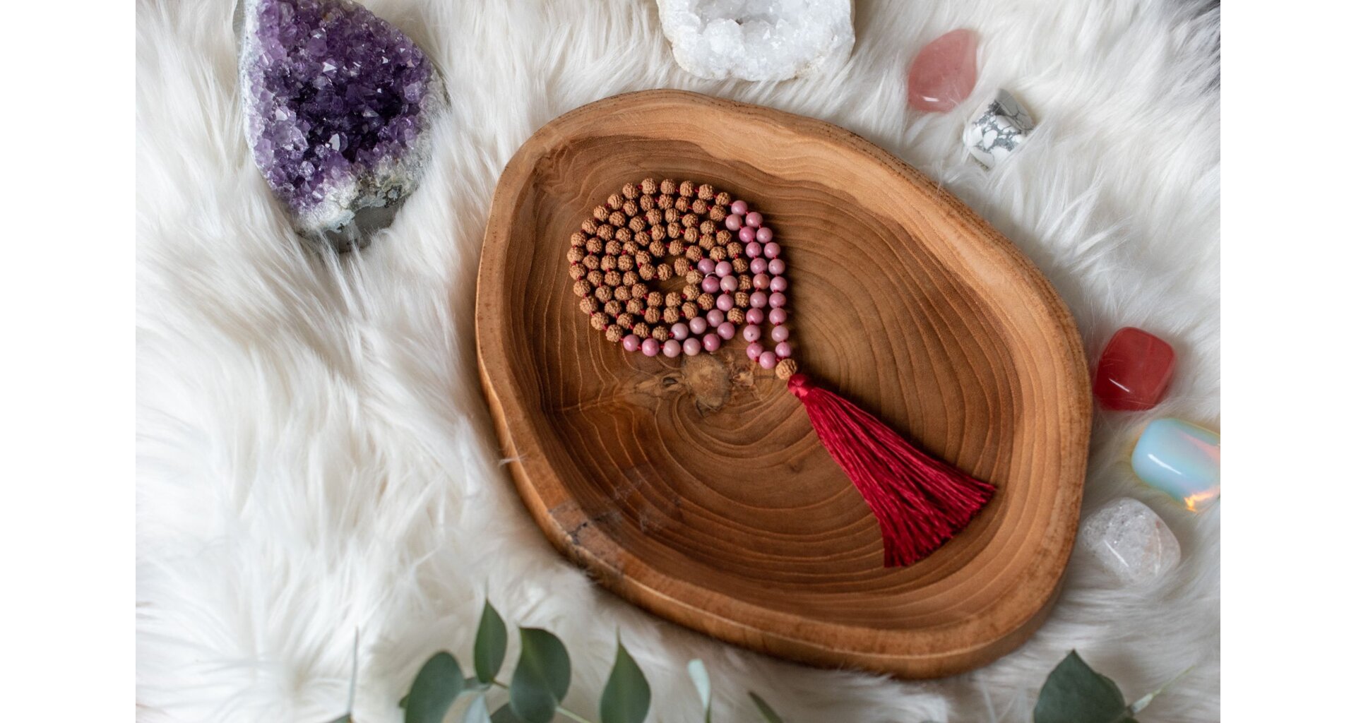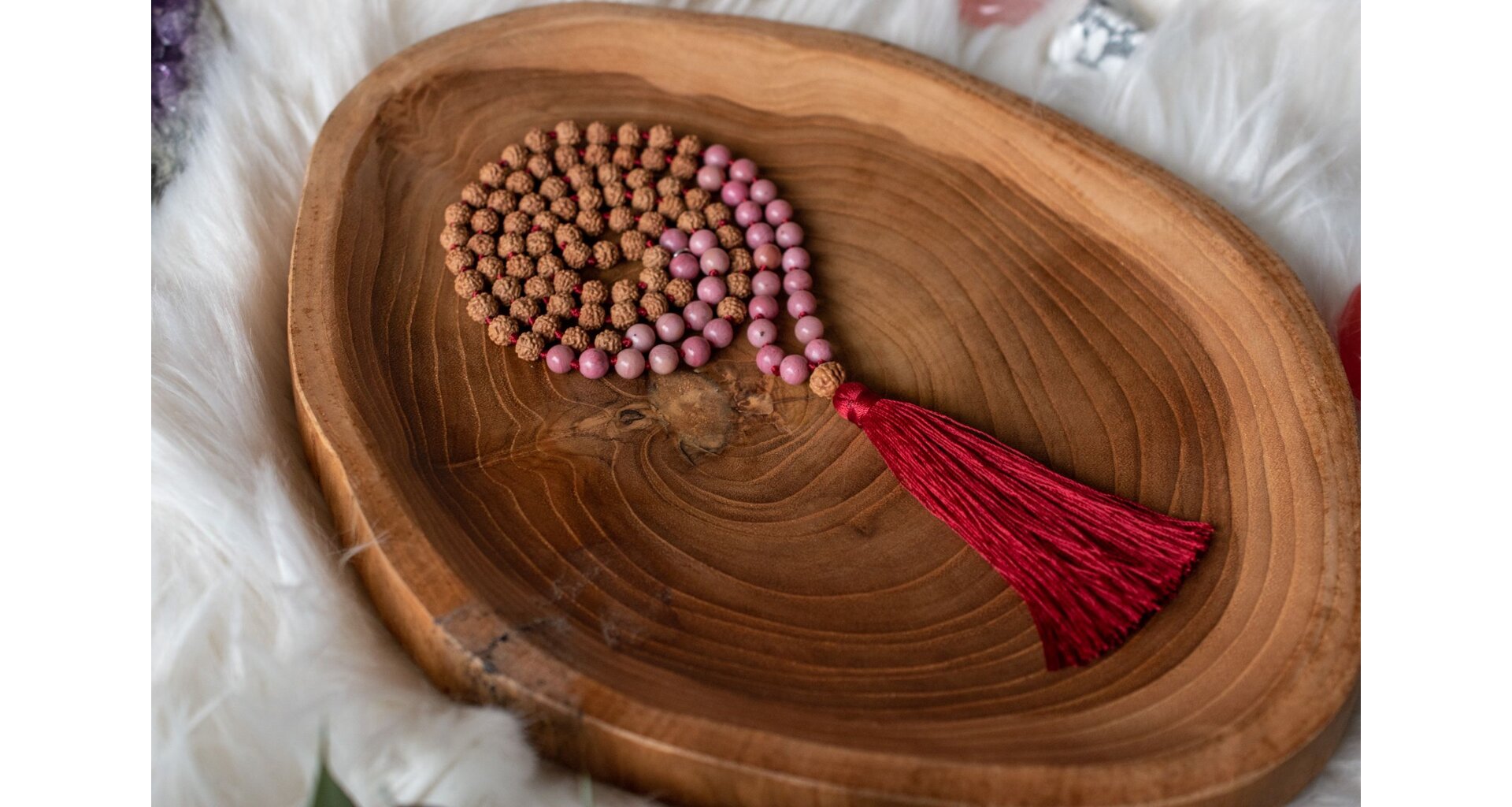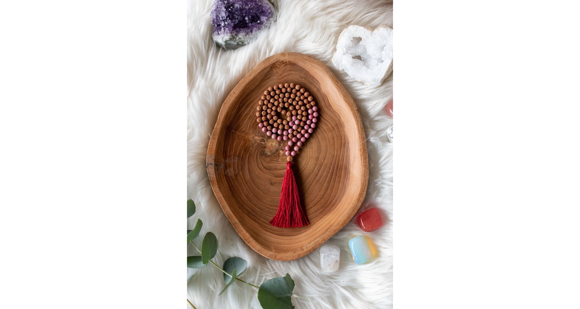 Rodonit a Rudraksha tvoří harmonickou kombinaci lásky a duchovní ochrany. Rodonit je růžovočervený kámen, který podporuje léčení emocí, odpuštění a vnitřní klid. Rudraksha, posvátné semínko, přináší ochranu, duchovní sílu a vyrovnanost. Společně pomáhají uzdravovat vztahy, posilují soucit a podporují emoční rovnováhu.