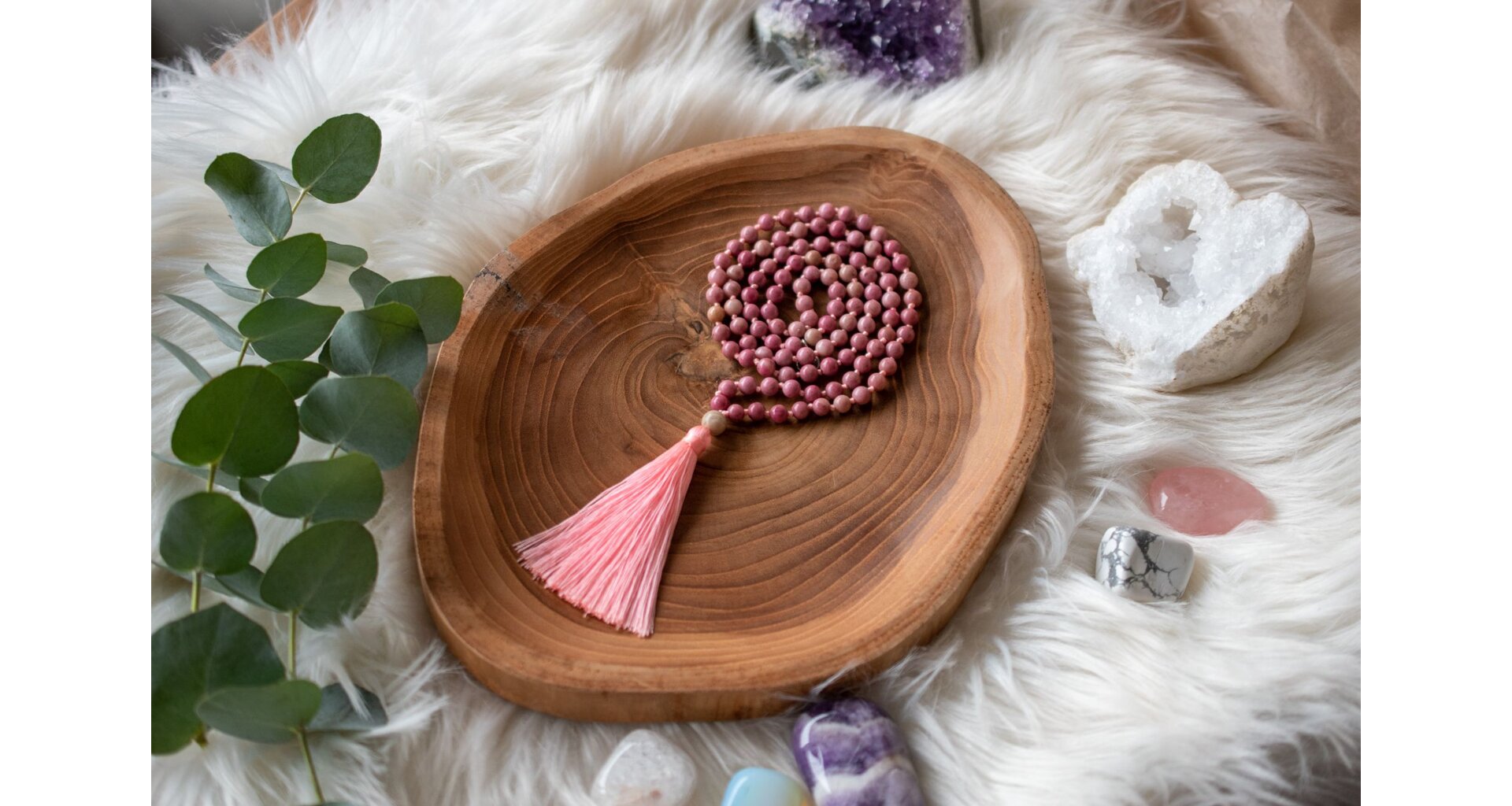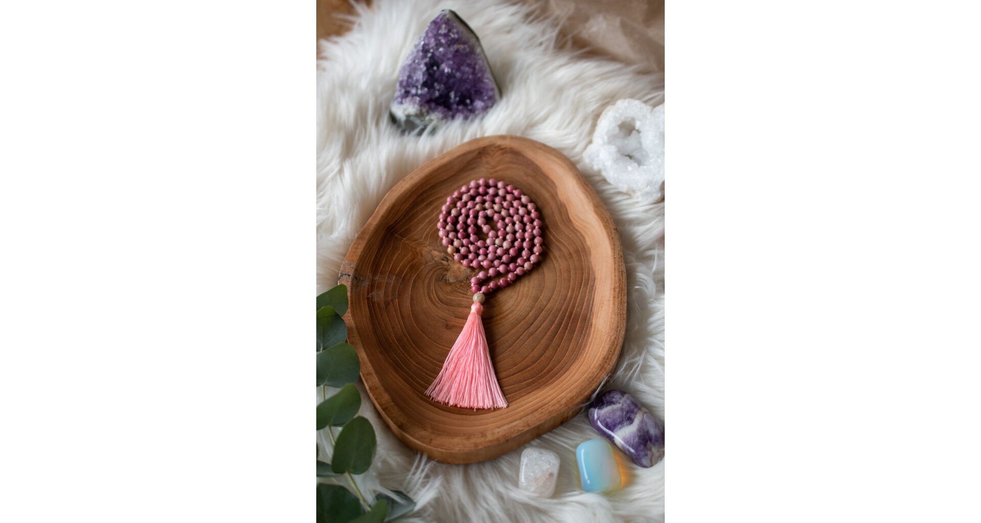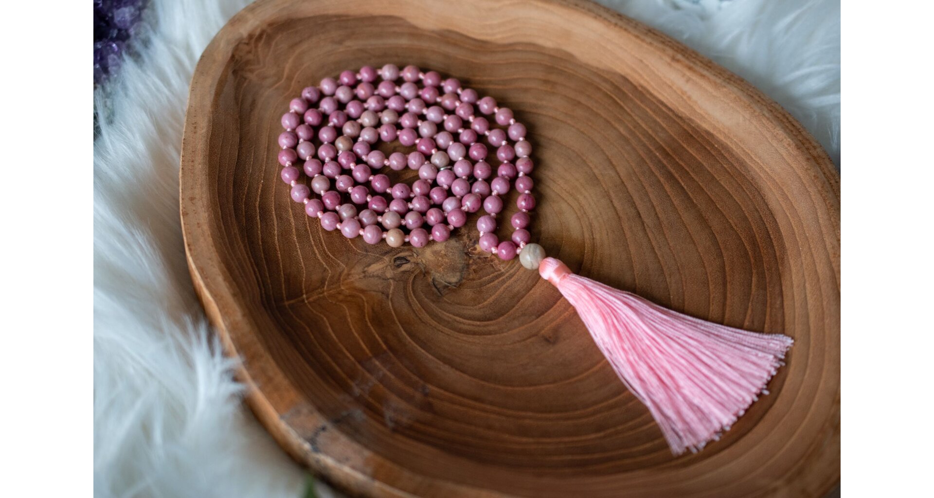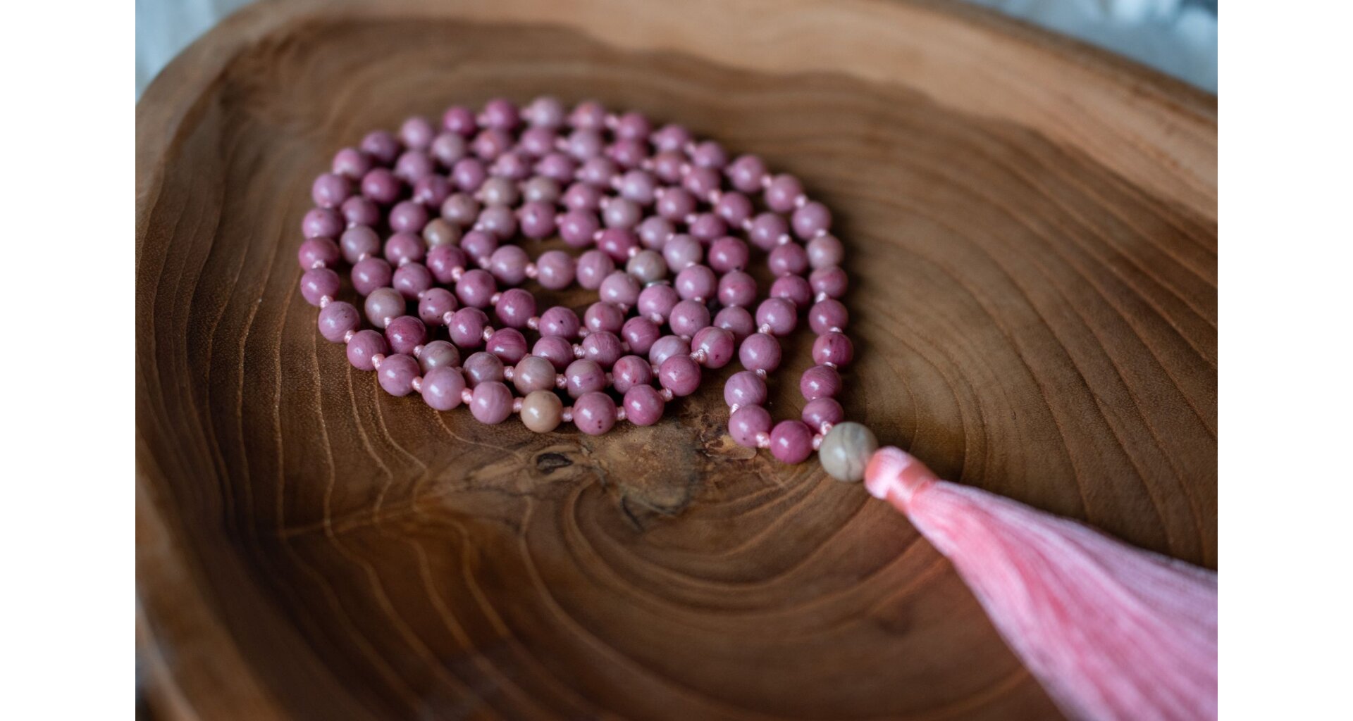 - Ručně vyrobená meditační mala s rodonitem