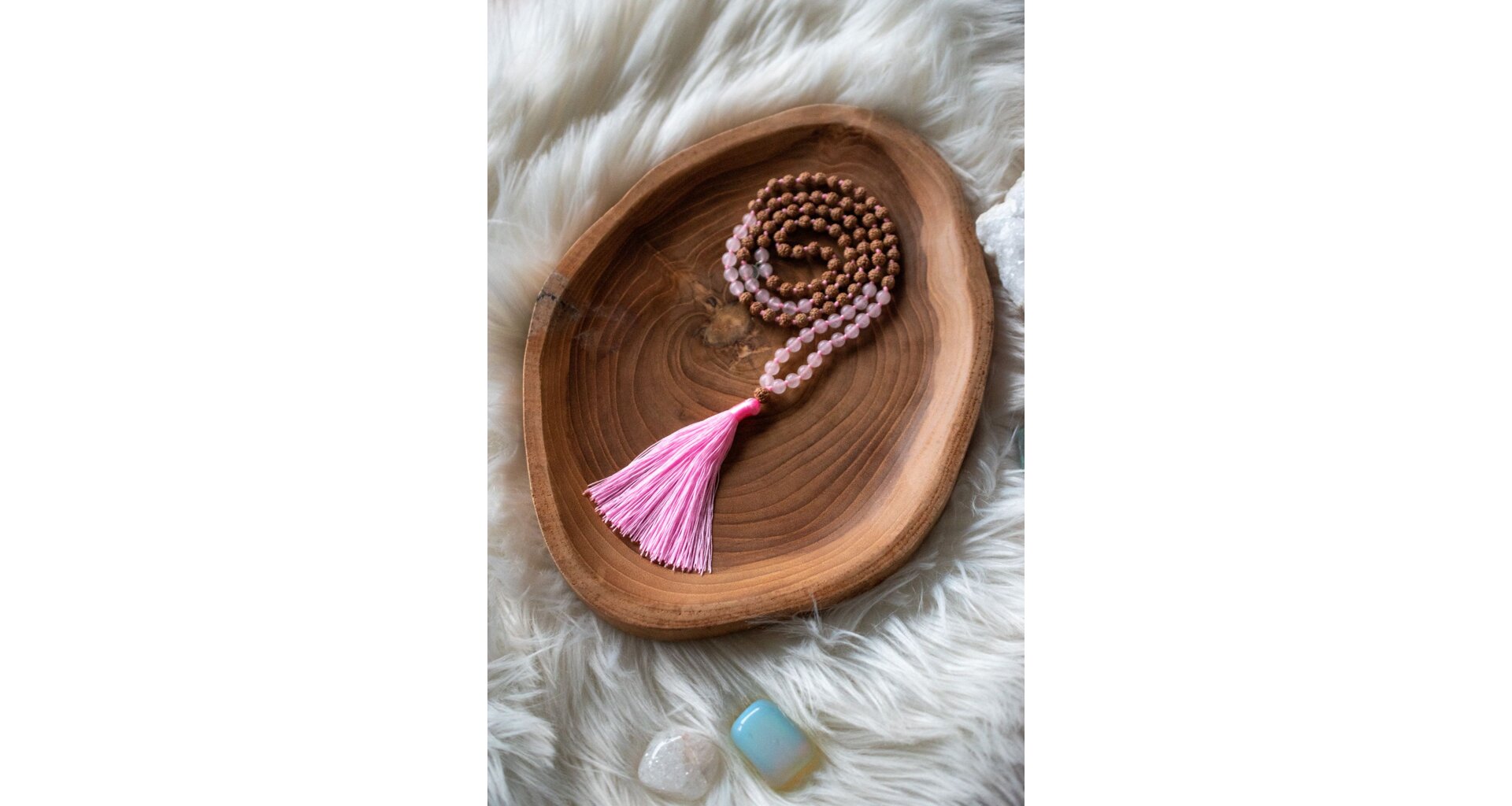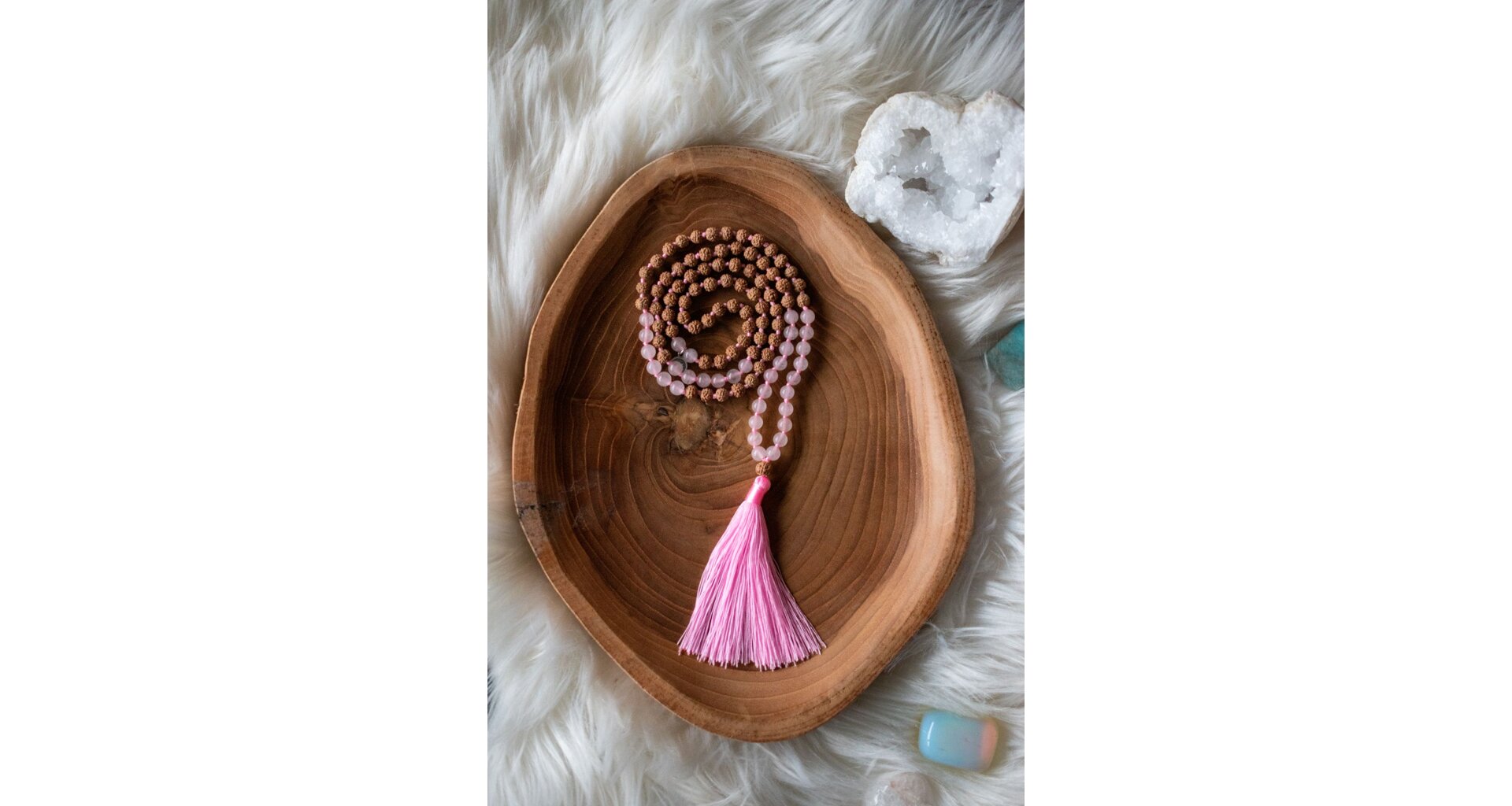 Růženín a Rudraksha tvoří jemnou a silnou kombinaci lásky a duchovní ochrany. Růženín podporuje sebelásku, léčení emocí a harmonii ve vztazích, zatímco Rudraksha, posvátné semínko, přináší ochranu, klid a duchovní sílu. Společně pomáhají posilovat soucit, vnitřní rovnováhu a propojení s vyšším já.