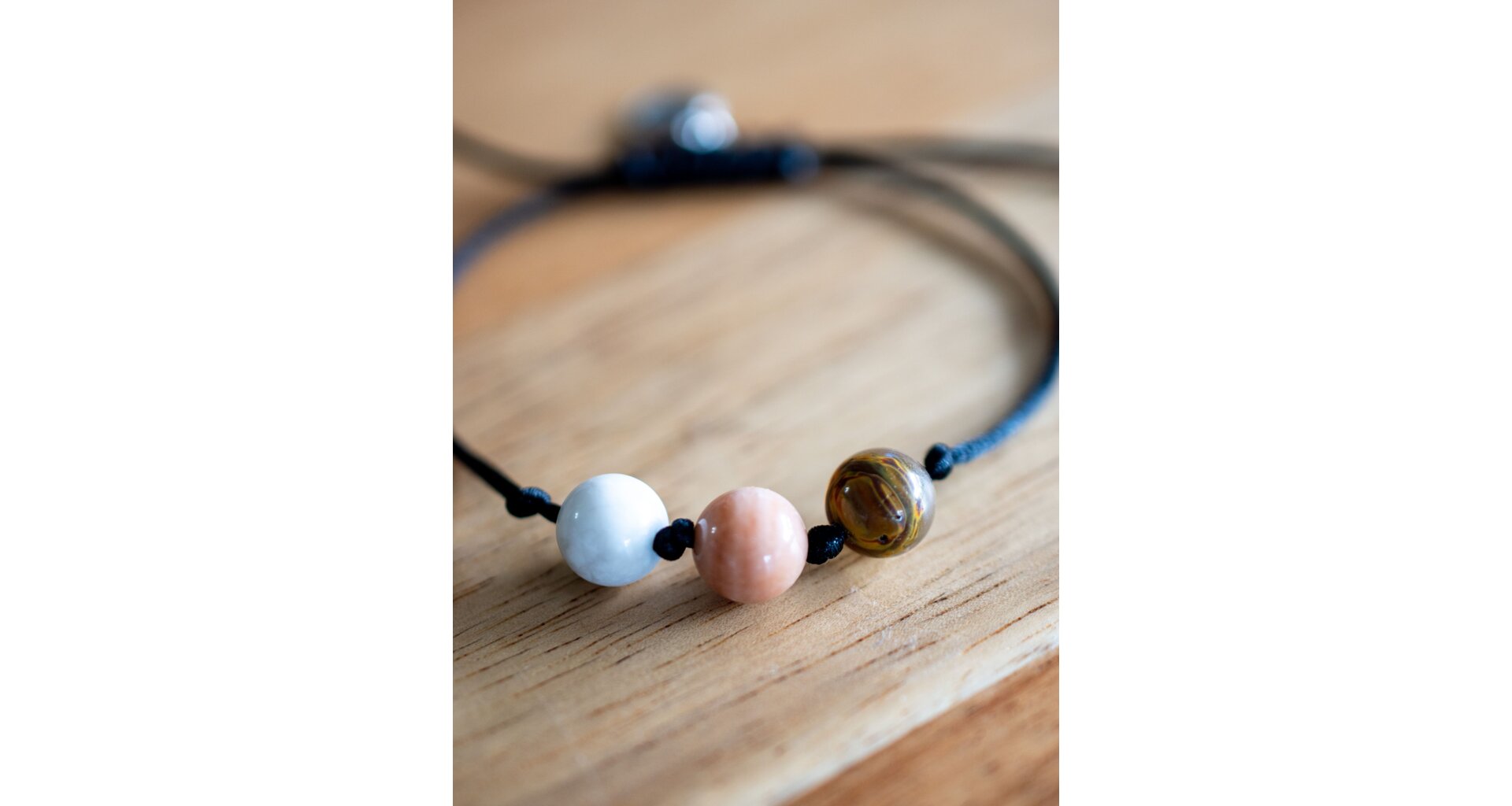 - Krásný jemný náramek - magnezit, sluneční kámen, tygří oko