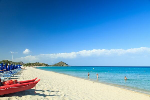 Jen o kousek dál leží Villasimius, živější, ale stále autentická přímořská vesnička obklopená přírodními rezervacemi. Najdeš tu malebné zátoky jako Porto Giunco nebo Simius Beach, kde se setkává bělostný písek s teplým tyrkysovým mořem. Oblast je známá také chráněnou mořskou oblastí Capo Carbonara – rájem pro šnorchlování a pozorování podmořského života.
