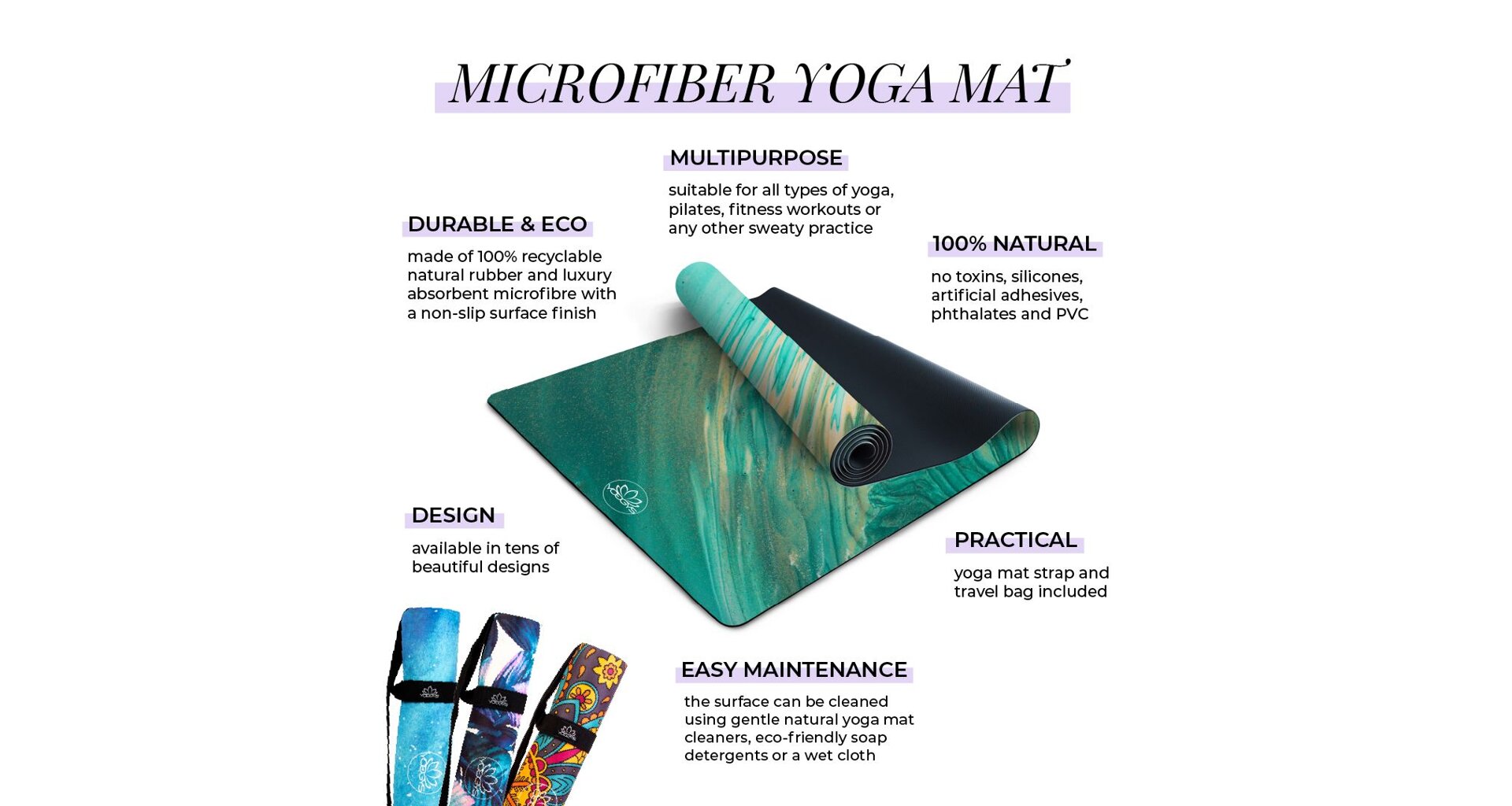 - Luxus-Yogamatte mit einer Basisschicht aus recycelbarem Naturkautschuk und einer weichen Oberflächenschicht aus absorbierender Mikrofaser